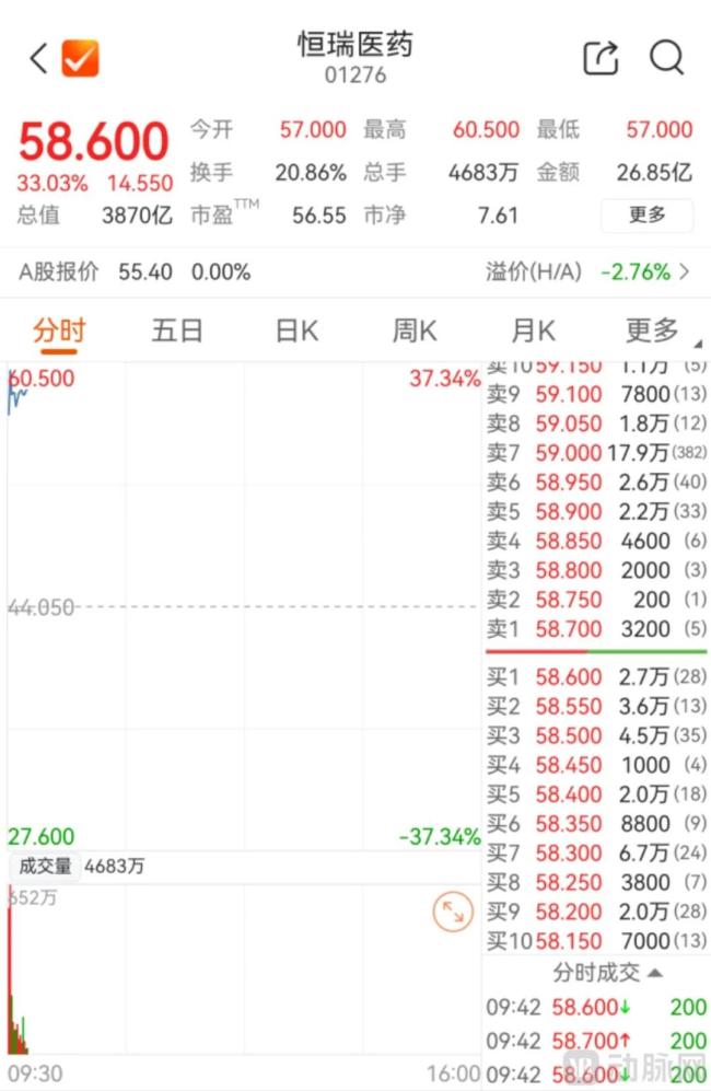 恒瑞医药港股IPO,大涨33%,市值超3800亿!
