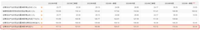 这一数据又进一步引起两个变化,一个是净现比直接创新低,2025年一季度降至0.64。而自2021年上市以来,只有2022年有两个季度略小于1,其余季度都是明显大于1。