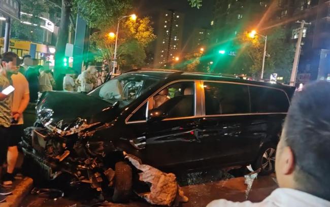 文景南路一家餐厅工作人员介绍,27日晚听到撞击声后,一辆由北向南行驶的黑色商务车冲过道路中间的护栏,撞停在对向车道的路沿旁,车灯在闪,有人怀疑司机酒后驾车。不远处,一名交警倒地不起,周围的食客陆续赶到现场围观。肇事车辆险些撞到该餐厅的两桌客人,玻璃碎碴飞溅到了菜里,最后给这两桌客人免单了。