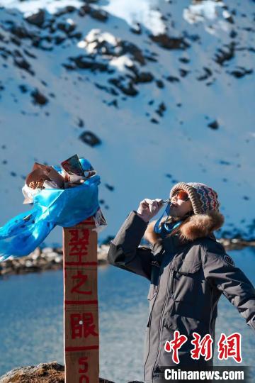 2025年1月,胡月用一条腿爬上人生第一座雪山。胡月供图