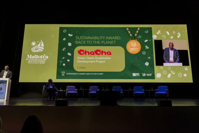 在本次大会上,洽洽食品凭借其卓越的可持续发展实践,荣获回归地球项目“INC2025可持续发展奖”,成为中国坚果行业首家获此殊荣的企业。该项目自2021年启动以来,聚焦全生命周期绿色制造,覆盖坚果种植、沙漠生态修复及可再生能源应用三大领域。