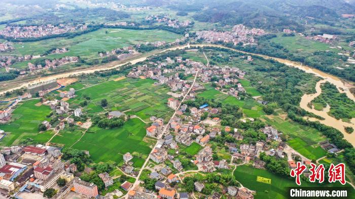 近日,航拍广西梧州市苍梧县沙头镇,镇区与周边乡村连为一体。黎杰源 摄