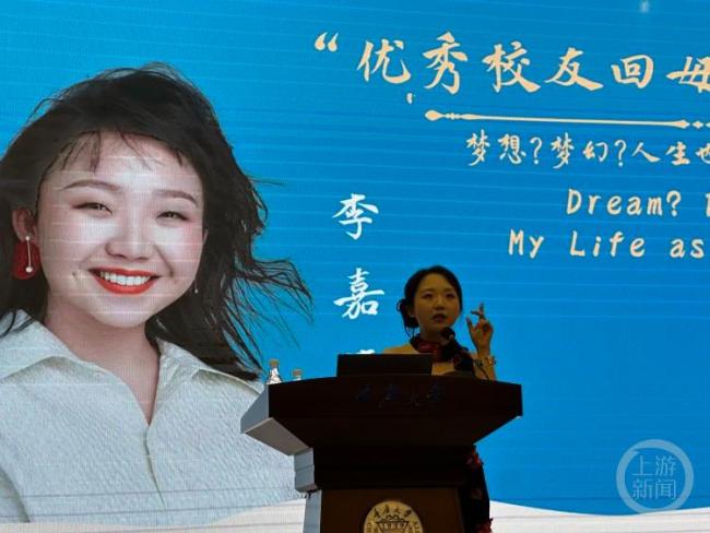 在回答学弟学妹们的提问时,李嘉琦鼓励大家勇敢追求自己的梦想,不要在意别人的意见和眼光。即使跌倒了、失败了,也不会后悔。