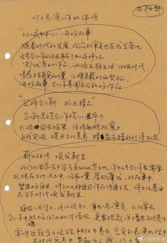 范丞丞广电培训手写笔记曝光 青年演员心得分享