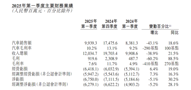 同日,蔚来发布了2025年一季度财报,营收为120.35亿元,同比增长两成,环比下降近4成,净亏损为67.5亿元,同比增长30.2%,环比收窄5.1%。经调整净亏损为62.79亿元,同比增长28.1%,环比收窄5.2%。截至2025年3月31日,蔚来手握260亿元现金,并表示未来12个月资金充足。