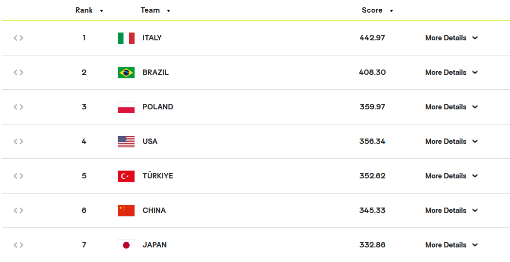 共18支队伍参加2025世界女排联赛,每队需在三站比赛里进行12场小组赛,包含总决赛东道主波兰队在内的前八名队伍晋级总决赛。中国队、比利时队、波兰队、泰国队、土耳其队和法国队参加北京站赛事。