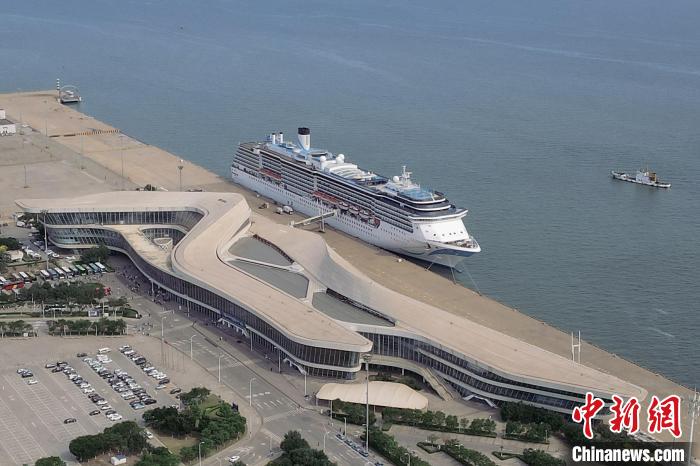 6月8日,爱达邮轮旗下“爱达·地中海”号国际邮轮回归天津国际邮轮母港,搭载近2600名旅客开启前往日韩的国际邮轮航线。(无人机照片)中新社记者 佟郁 摄