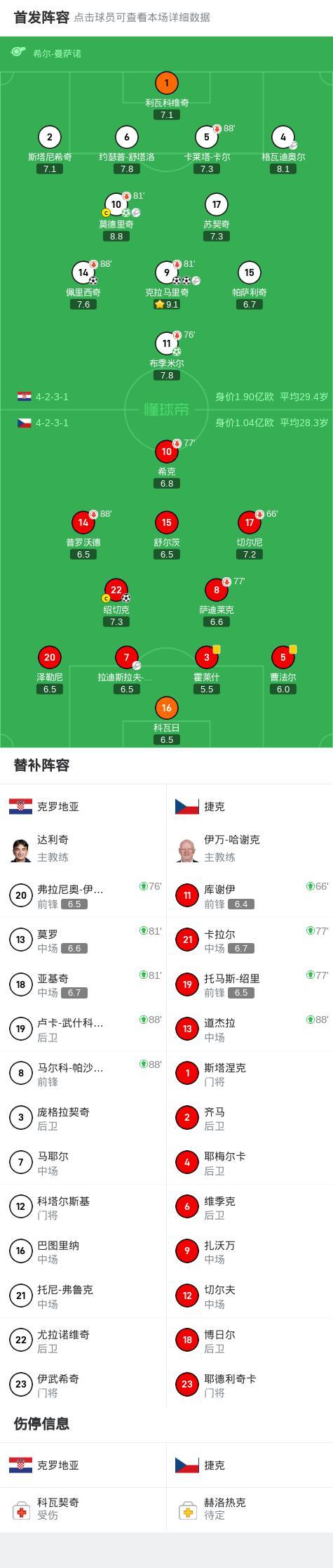 世预赛:克罗地亚5-1大胜捷克 克拉马里奇两射一传 莫德里奇传射 格子军多点开花