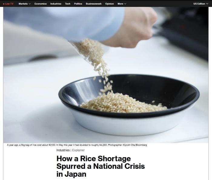 报道指出,日本大米短缺问题开始于2023年,背后有多重原因。