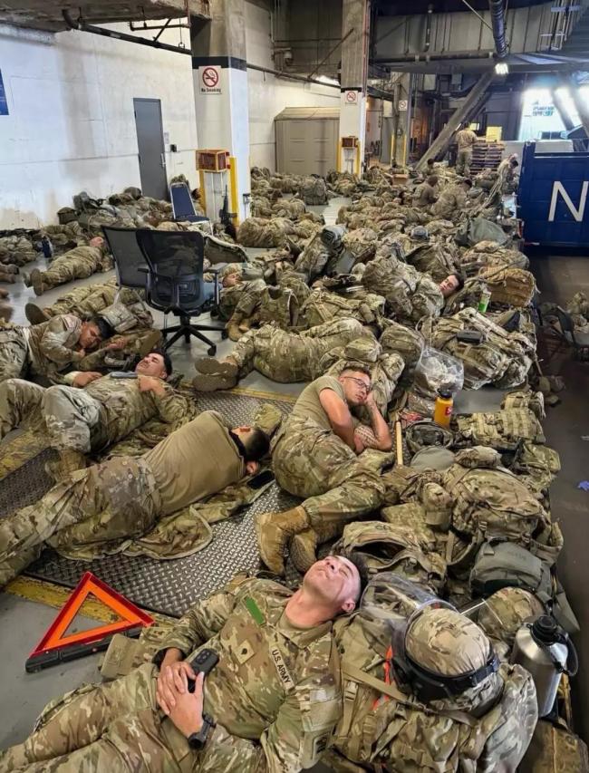 据美国Axios新闻网等媒体报道,加利福尼亚州洛杉矶地区部署的国民警卫队人员因“挤在一起睡地板”的照片在网上疯传,引发外界批评。舆论认为美政府的部署决定草率且多余。加州州长纽森分享了这些照片,并表达了不满,称士兵们无处睡觉且缺乏补给。