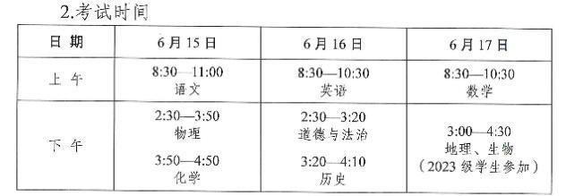综合素质评价、艺术素质测评、物理化学实验操作和生物、地理考查以等级或等第呈现。道德与法治和历史学科合场、合卷,实行开卷考试;其他学科则为闭卷考试。英语听力口语考试、艺术素质测评终结性评价和生物、地理考查采用在线机考方式。体育考试采用选项方式,并使用电子设备测量成绩;物理实验和化学实验采用操作考查方式。