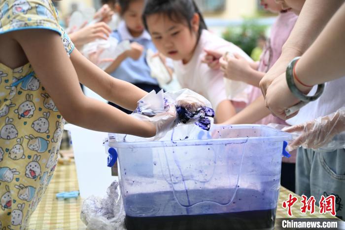 图为小朋友在体验学习瑶绣。黄数情 摄