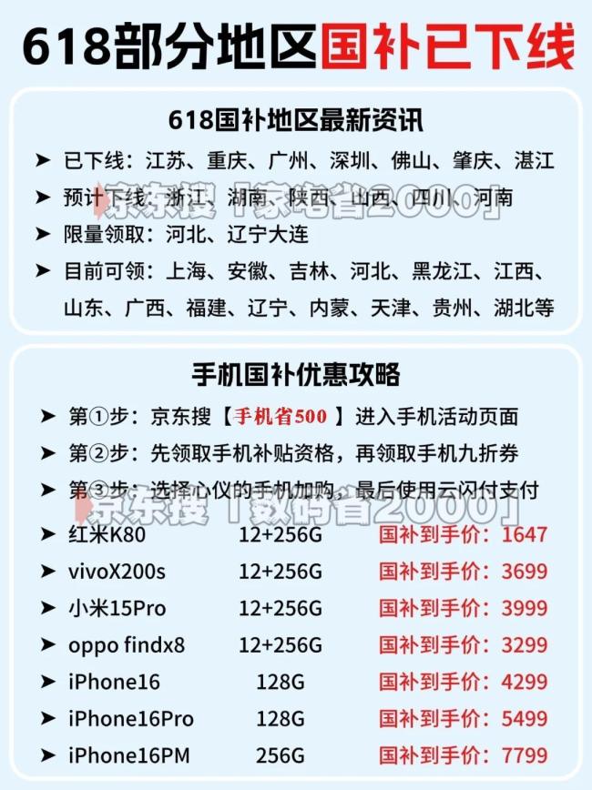 手机数码国补的领取方法是通过京东APP搜索「手机省500」或「数码省2000」,直接立减2000元;家电国补的领取方法是搜索「家电省2000」领取。建议先领,名额有限。秘诀是在app搜一下上述口令,以后每天点历史搜索记录就可以快速进入。