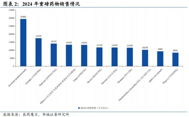 华福证券研报统计数据显示,截至2037年,有27款在2024年全球销售超过40亿美元的药品在美国会面临专利悬崖,即原研药专利和独占权到期。若以2024年销售额为准,合计潜在损失金额约2443亿美元,涉及100亿级别药物多达9款。