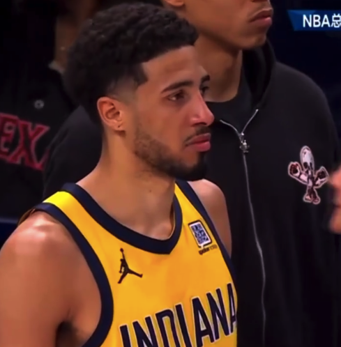 哈利伯顿眼神绝望看雷霆队主场庆祝 内心苦闷