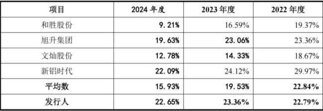 报告期内,公司主营业务毛利率维持在23%左右,而同行都呈连年下降趋势,2024年友升股份甚至以微弱优势位居同行之首。