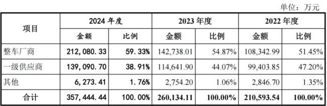 2024年公司的主要营收里,约6成直接向整车厂商供货,4成向一级供应商供货。