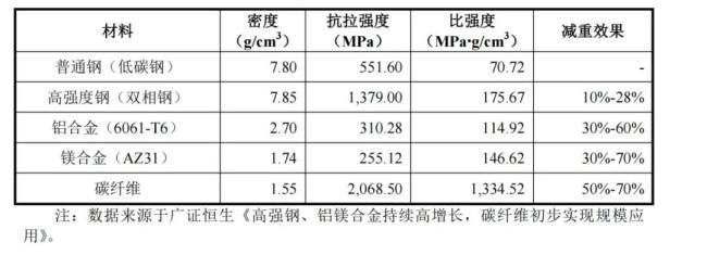 但这条赛道也并非高枕无忧,目前主要使用的轻量化材料除了铝合金,还有高强度钢、铝合金、镁合金、碳纤维复合材料等。
