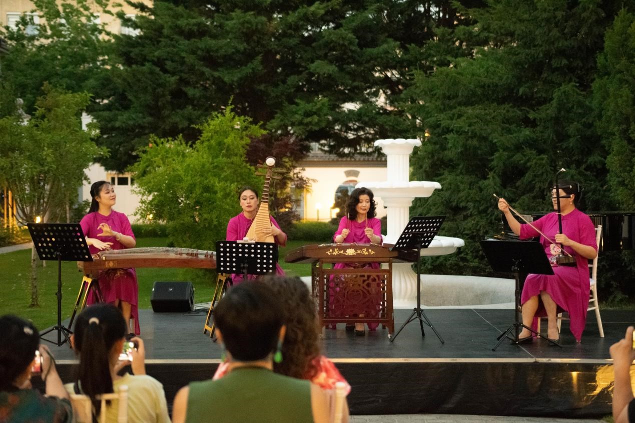 当晚7点,“对话·知音”音乐晚会在布达佩斯中国文化中心如期举行,近百位当地民众相约来到中心花园,兴致勃勃地参加晚会。音乐会分为上下两个乐章,以学院派与民间音乐的双重视角展现中匈音乐魅力。上半场由李斯特音乐学院教师阵容主导。青年钢琴家科瓦奇以《绽放在东方》揭幕,表达对匈中友谊的礼赞;随后小提琴系主任班达教授与大提琴家佐尔坦接力演出,演绎出丰富的情感层次;最后,男高音拂尔黛西以一曲《今夜无人入睡》将艺术张力推至高潮。下半场则是聚焦民间音乐的跨文化对话。中匈传统乐器如扬琴、琵琶、科博兹琴、古筝、奇特拉琴和小提琴交相辉映,呈现精彩纷呈的合奏节目。压轴环节中,匈牙利民乐团即兴演奏《查尔达什》,邀请观众共舞圈圈舞,现场气氛欢快热烈,将全场带入文化共融的美好氛围。