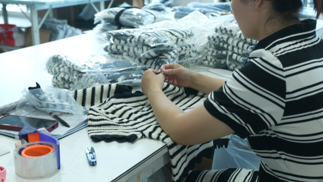 孙俊杰的公司内,员工正在对出海产品进行严格质检