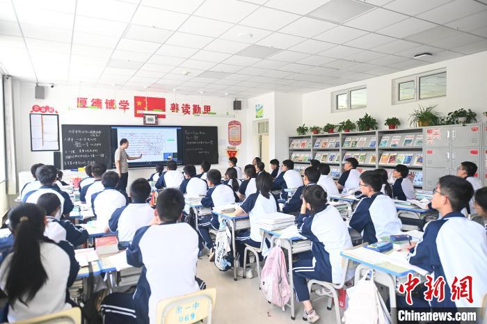 图为肃南一中学生正通过直播与成都七中学生同步上课。李亚龙 摄
