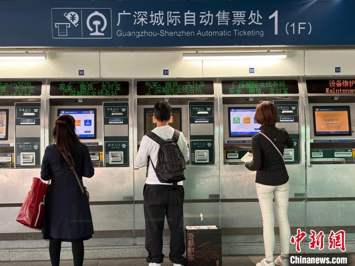 旅客在广深城际自动售票处购票(资料图)。田恬 摄