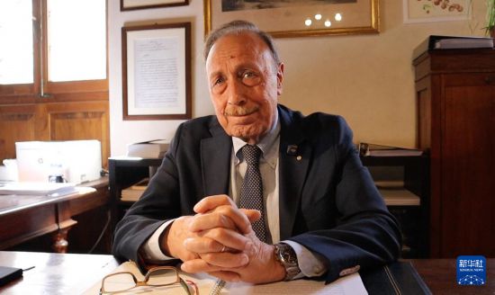 6月12日,意大利自然科学院院长马西莫·温琴齐尼在位于佛罗伦萨的意大利自然科学院接受新华社记者专访。新华社发(劳拉·德拉科尔特摄)