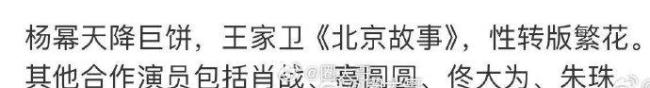 杨幂王家卫合作《北京故事》,肖战高圆圆朱珠加盟