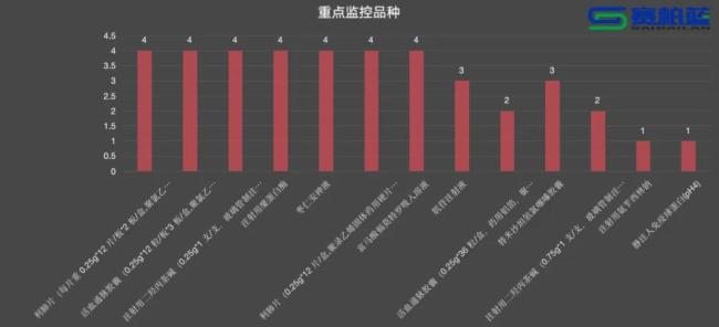 未通过公允性品种中,生脉饮、垂盆草颗粒(无糖型)等药品均被点名过4次。未通过公允性药品名单按超提示价幅度降序排列,累计被点名的药品名单和数量如下: