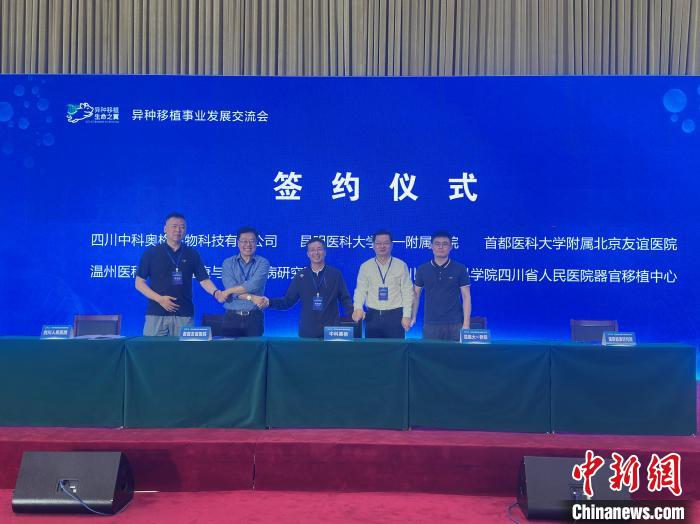 活动上,中科奥格生物科技有限公司与昆明医科大学第一附属医院、首都医科大学附属北京友谊医院、温州医科大学眼健康与高等疾病研究院、四川省医学科学院、四川省人民医院器官移植中心等单位签订合作协议,为中国异种器官移植的临床实验和成果转化注入新的活力,也将为人类健康提供更加坚实的科技支撑。