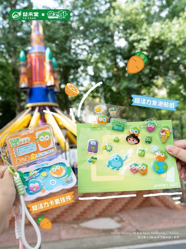 本次联名活动以“健康双补给”套餐为核心,巧妙推出单杯元气套餐与双杯清爽套餐。消费者在小程序下单,购买单杯橙C胡萝卜或者橙C胡萝卜搭配胡萝卜芒芒椰/粉黛苹果,可获得超活力发泡贴纸、卡套挂件等限定周边。令人惊喜的是,上小程序还能参与“疯狂的萝卜”活动,有机会赢取益禾堂黄金纪念币;外卖平台则提供更灵活的饮品组合,购买橙C胡萝卜搭配胡萝卜芒芒椰(也可选两次单杯),同样赠送发泡贴纸、卡套挂件。两款套餐均有限时限量供应的“彩蛋版”,可额外加赠两根水果胡萝卜,结合融合游戏视觉与胡萝卜元素的限定杯贴,活动构建了丰富的感官体验。