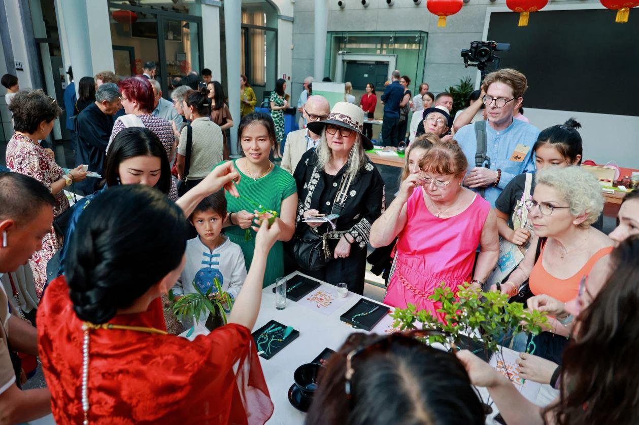 此次活动是布鲁塞尔中国文化中心开馆十周年系列活动之一,集城市推介、非遗展示、互动体验与主题展览于一体,多维度展现了中国茶文化的历史传承与当代表达,为当地民众带来一场沉浸式的东方美学体验。