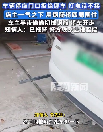 车辆乱停拒绝挪车 店主一气之下用钢筋将四周焊住