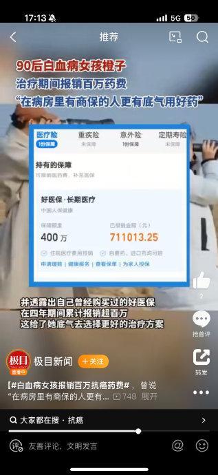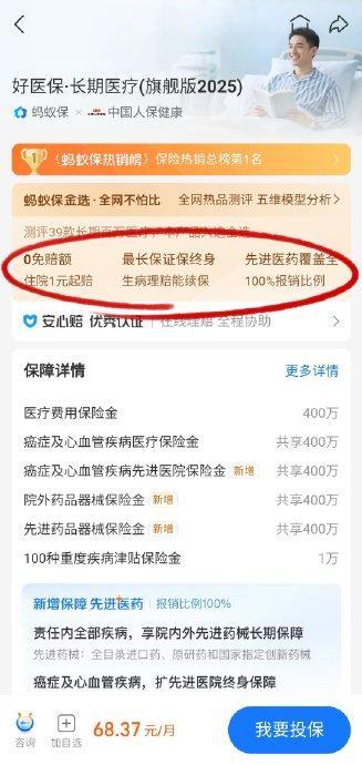 这个女孩购买的是好医保的老版本。近期,好医保旗下旗舰、中老年和少儿三款核心产品都进行了2025版升级,主要提升了对先进药械的覆盖范围,包括全目录进口药和近400种原研药。成人旗舰版2025每年保费仅几百元,性价比很高,通过支付宝搜索蚂蚁保好医保即可找到最新产品。
