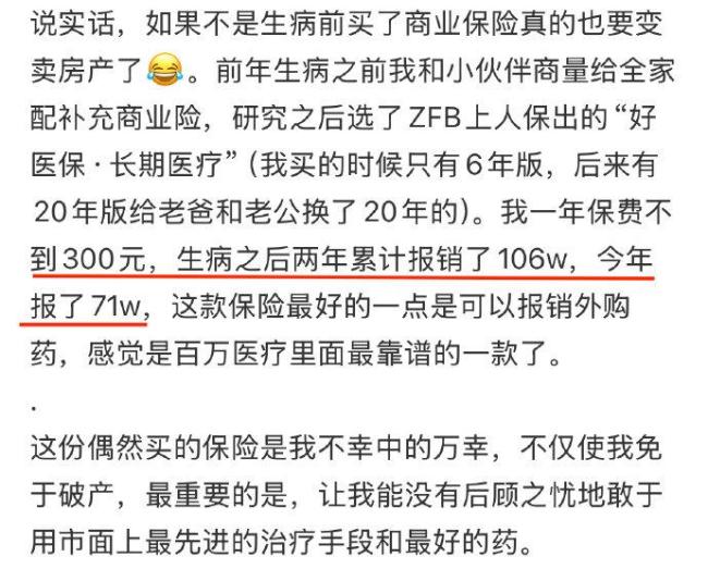 白血病百万新药好医保能报了 保险展现真实价值!一个普通女孩因偶然购买了一份保险,在患上白血病后,这份保险发挥了重要作用。她接受了移植仓、化疗、免疫治疗及特药等超过200万元的治疗费用,其中好医保报销了一百多万元。女孩表示,通过支付宝操作就能完成报销,包括外购药和最新的免疫疗法、靶向药都能覆盖,这给了她坚持治疗的信心。
