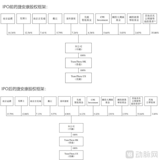IPO前后药捷安康股权框架,图源招股书