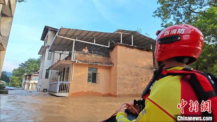 广西柳州山洪暴发紧急转移数百人 武警和消防驰援