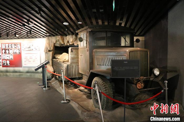 八路军驻新疆办事处纪念馆内展陈的物资运输车辆。苟继鹏 摄