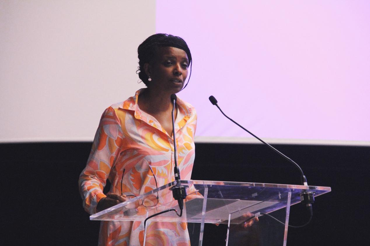 巴黎大区议会副主席哈米达·雷泽格致辞。主办方供图