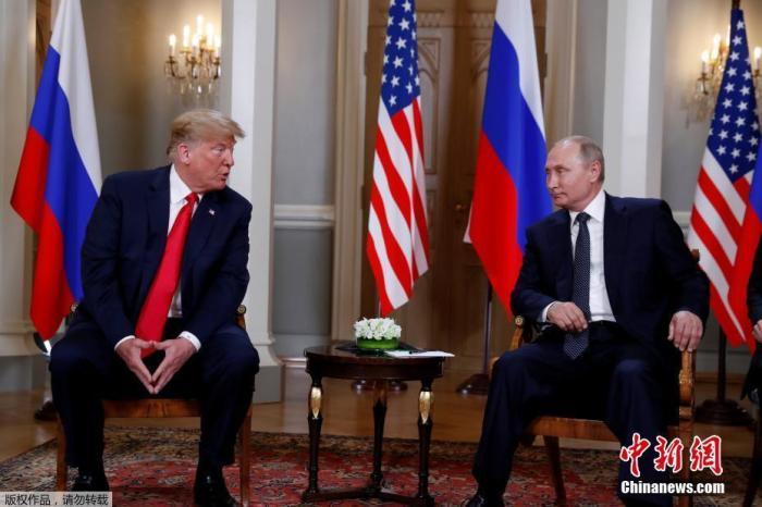 资料图:当地时间2018年7月16日,特朗普与普京在芬兰赫尔辛基举行会晤。