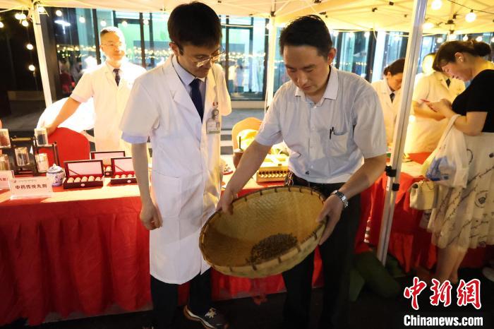 夜市现场,有市民举起天麻对着灯光看纹路,有市民把金银花凑到鼻尖细闻;几位女生做完耳穴压豆后,对着贴满药籽的耳朵自拍;小朋友们拿着“药膳冰激凌”在摊位间穿梭……传统医学的魅力,在人们的沉浸式体验中悄然渗透。