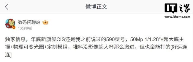 博主 @数码闲聊站 曝光了一款年底新旗舰的影像配置,预计是华为Mate 80系列。这款新旗舰将配备590型号的CIS,主摄为50Mp 1/1.28"±超大底,并具备物理可变光圈和定制模组。尽管堆料不如影像超大杯激进,但依然具有很强的竞争力。