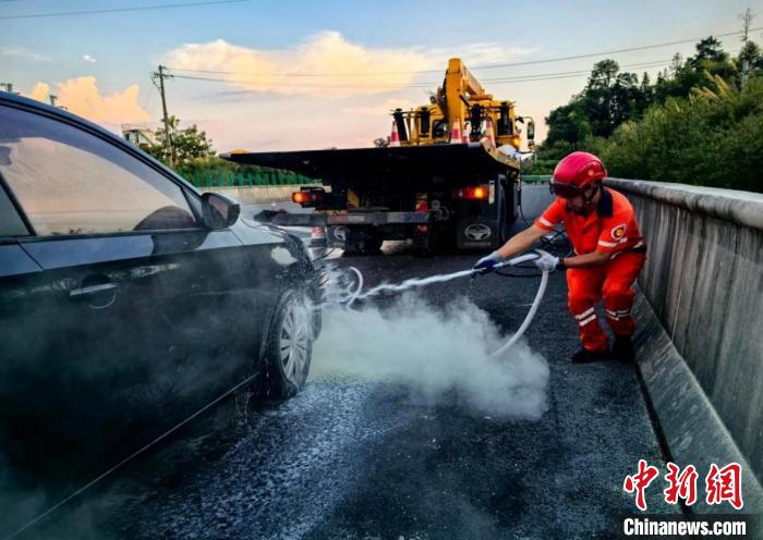 中新网宜春7月8日电 (华山 刘红芳 熊婷)眼下正值酷暑高温天气,针对高速公路车辆自燃事故的突发性与危险性、依赖消防到场响应耗时易错失黄金救援期等情况,江西交投集团宜春管理中心安源车辆救援大队创新研发“高速救援水气消防卫士”,为重型清障车安装隐蔽式灭火装置,将“等待救援”转为“主动拦截”,实现快速响应初期火灾,守护生命与交通运输安全。