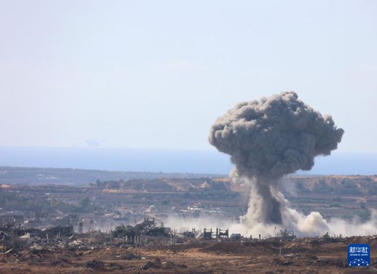 这是7月7日从加沙边境以色列一侧拍摄的加沙地带被毁建筑。新华社发(吉尔·科恩·马根摄)