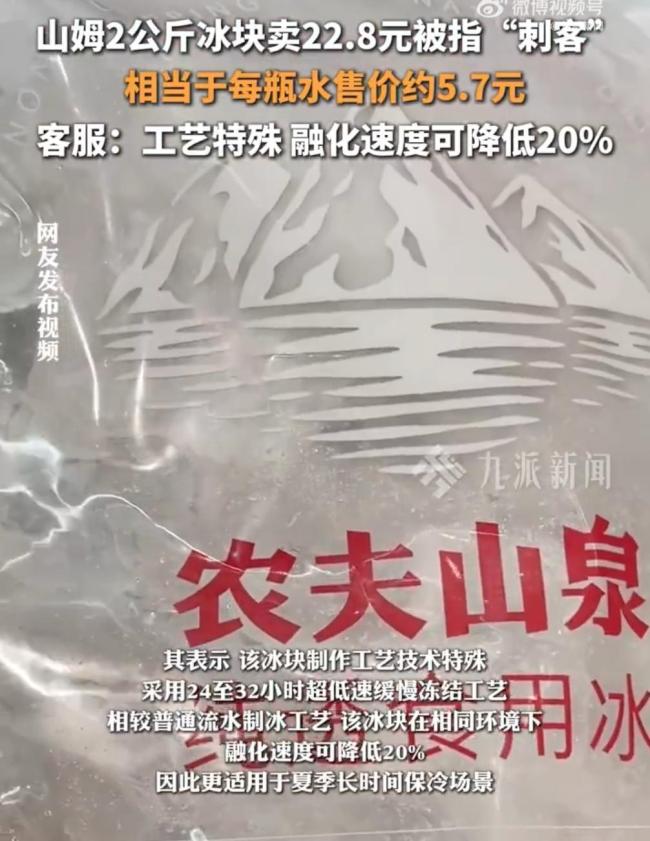 客服回应山姆4斤冰块卖22.8 特殊工艺高价有因