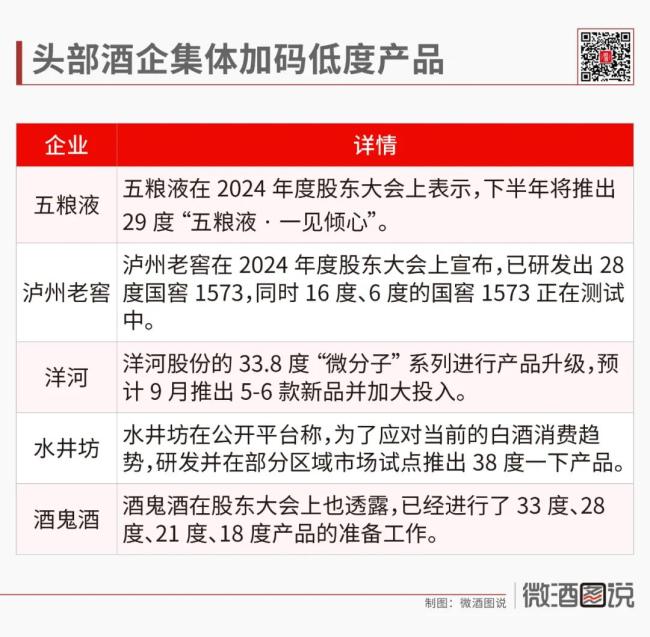 2025年上半年,五粮液、泸州老窖、洋河、水井坊、酒鬼酒等头部及知名酒企集体加码低度白酒产品线(涵盖29度至18度),标志着低度化已从探索性尝试上升为行业性战略方向。
