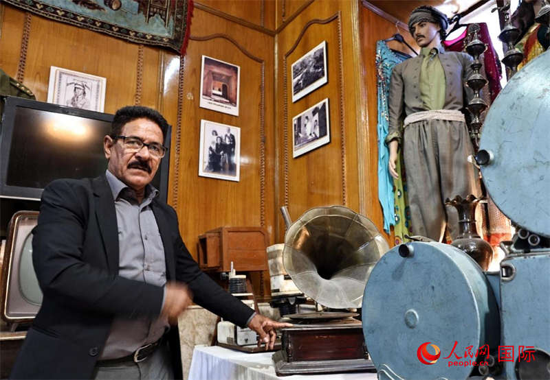 穆罕默德·阿尔万展示自己收藏的老物件。人民网 伊纳斯·易卜拉欣摄