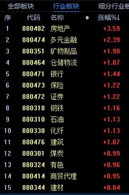 分析师:更猛的楼市刺激政策要来了 股市房市齐上涨!A股和港股的房地产板块突然大幅上涨,带动了相关行业如银行、保险、钢铁、建筑、建材等板块的表现。在A股中,房地产板块整体上涨了3.59%,位居第一。港股房地产板块涨幅更是达到了7%,部分个股甚至上涨超过20%。