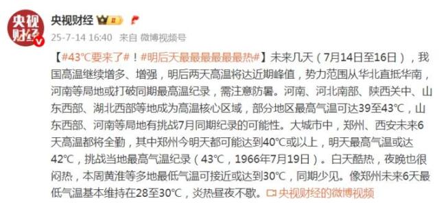 43℃要来了 多地或热到破纪录 高温进入鼎盛时段