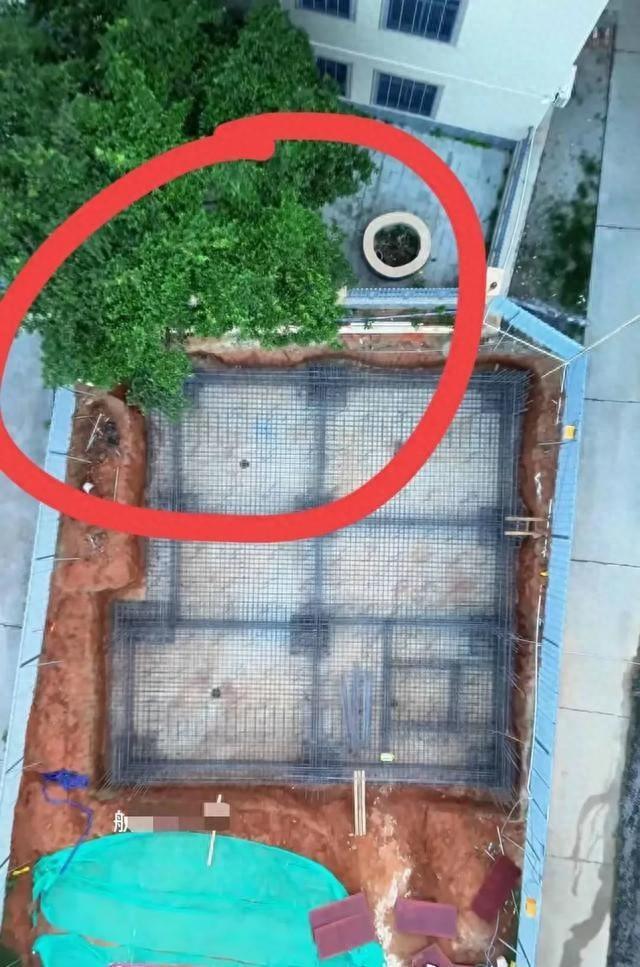 奥运冠军全红婵家乡湛江麦家村的新房建设因一棵树而暂停。这棵树长在邻居家的院子里,位于新房地基后面,树枝已经越界伸到了新房这边。施工队搭起的架子只能小心地从树枝和树叶的缝隙里穿过,影响了施工进度。